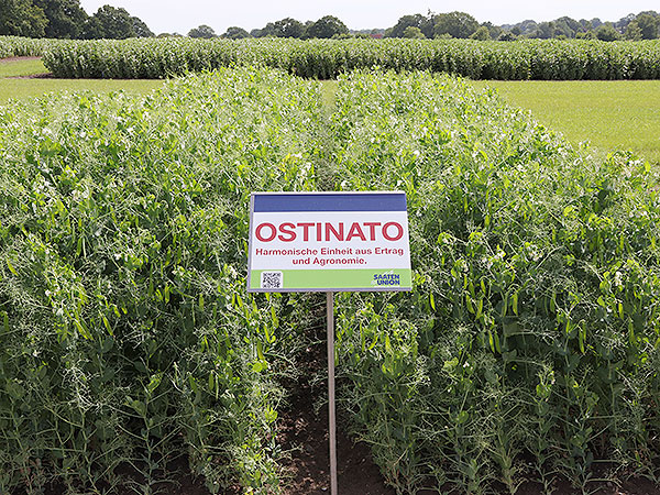 OSTINATO combines yield stability in grain and protein with good agronomy. Due to its high lodging resistance and the mid-early maturity, the variety is easy to harvest with a higher plant height at maturity. OSTINATO shows a broad adaptation potential to different environmental conditions and is therefore suitable for all types of spring pea cultivation.